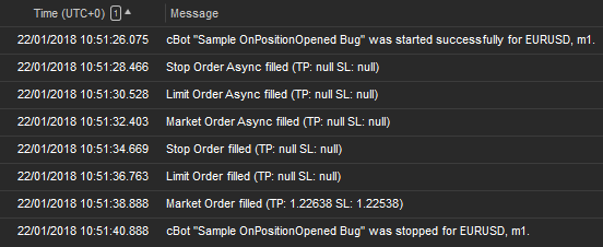 Print("{0} filled (TP: {1} SL: {2})", e.Position.Comment, e.Position.TakeProfit, e.Position.StopLoss);