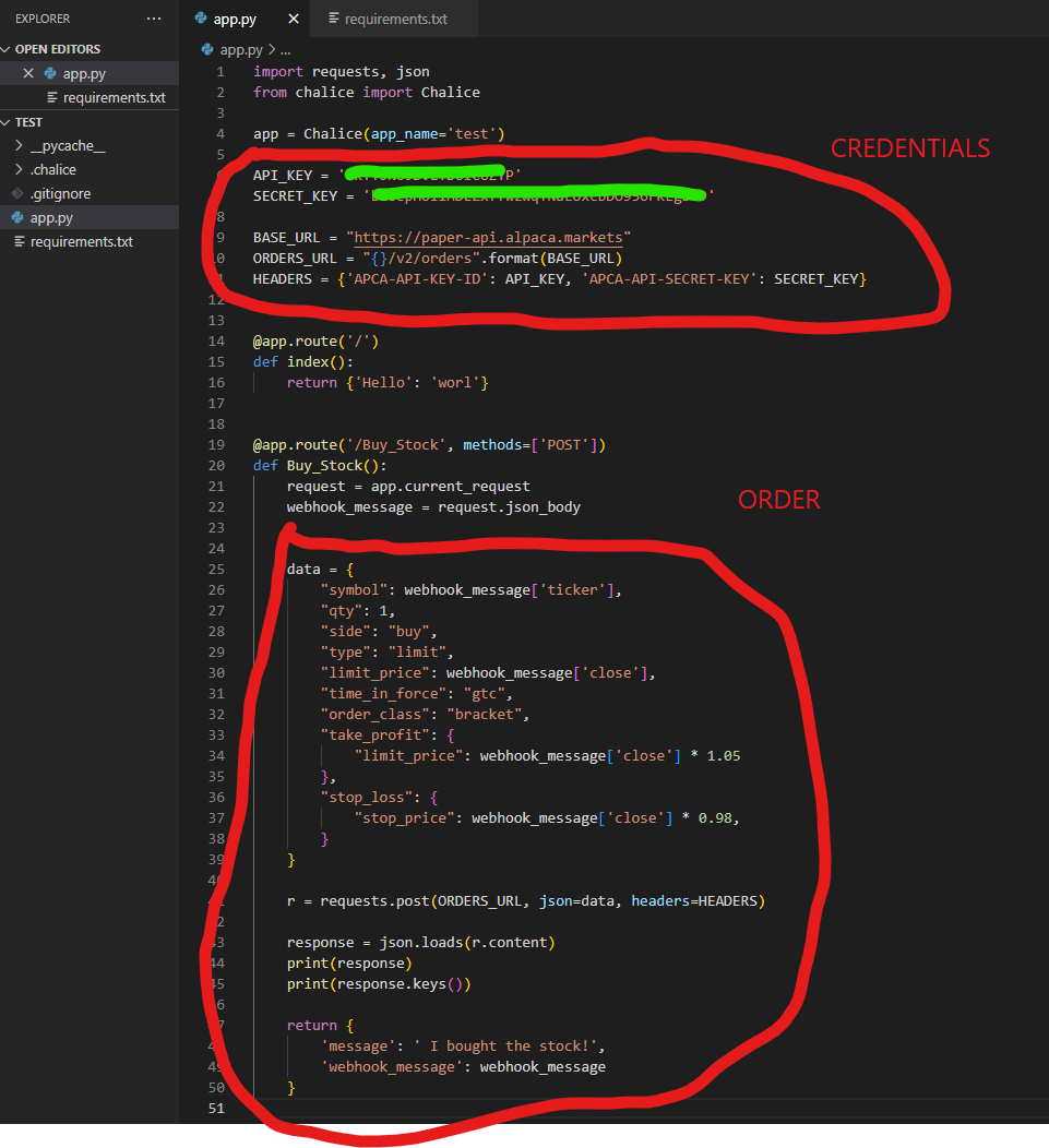 I am trying to use AWS chalice net server for GET alert sign from Tradingview that is connected with a webhook, the server page reads in JSON (brackets) format and will then POST to a Python script where i am planning to execute orders that will be sent to Ctrader. The problem is